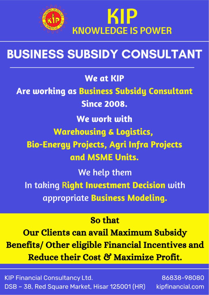 KIP Financial Consultancy is one of the leading consultants to provide the subsidy to MSMEs from the Government. We were associated with them for the last one year and with their best efforts, they got us a subsidy from Haryana Government in Lacs. We strongly recommend KIP Financial Consultancy Limited and express our gratitude to them.