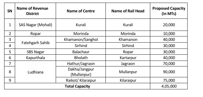 Total Storage Capacity: 4,05,000 Metric Tonnes